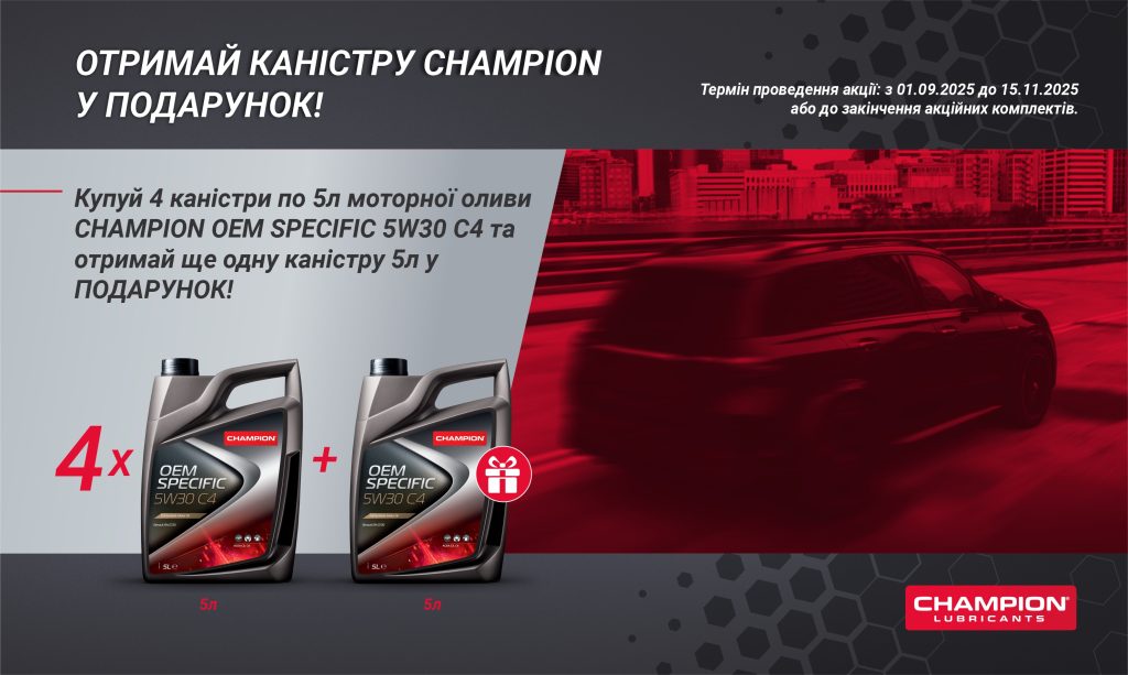 АКЦІЯ! ОТРИМАЙ КАНІСТРУ CHAMPION У ПОДАРУНОК!